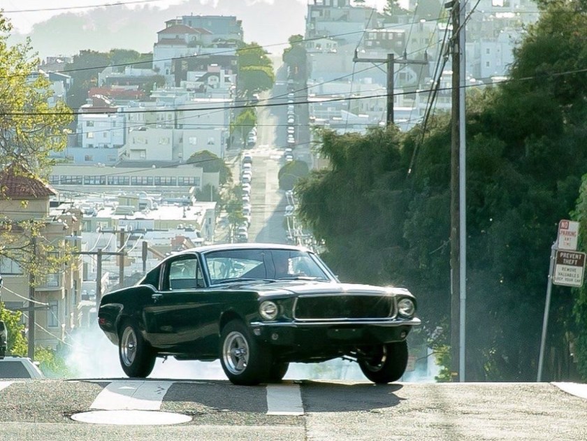 The iconic car chase in Bullitt, starring Steve McQueen, was filmed in which city? Secondly, McQueen was driving a Ford Mustang but what make and model was the other car in the chase?